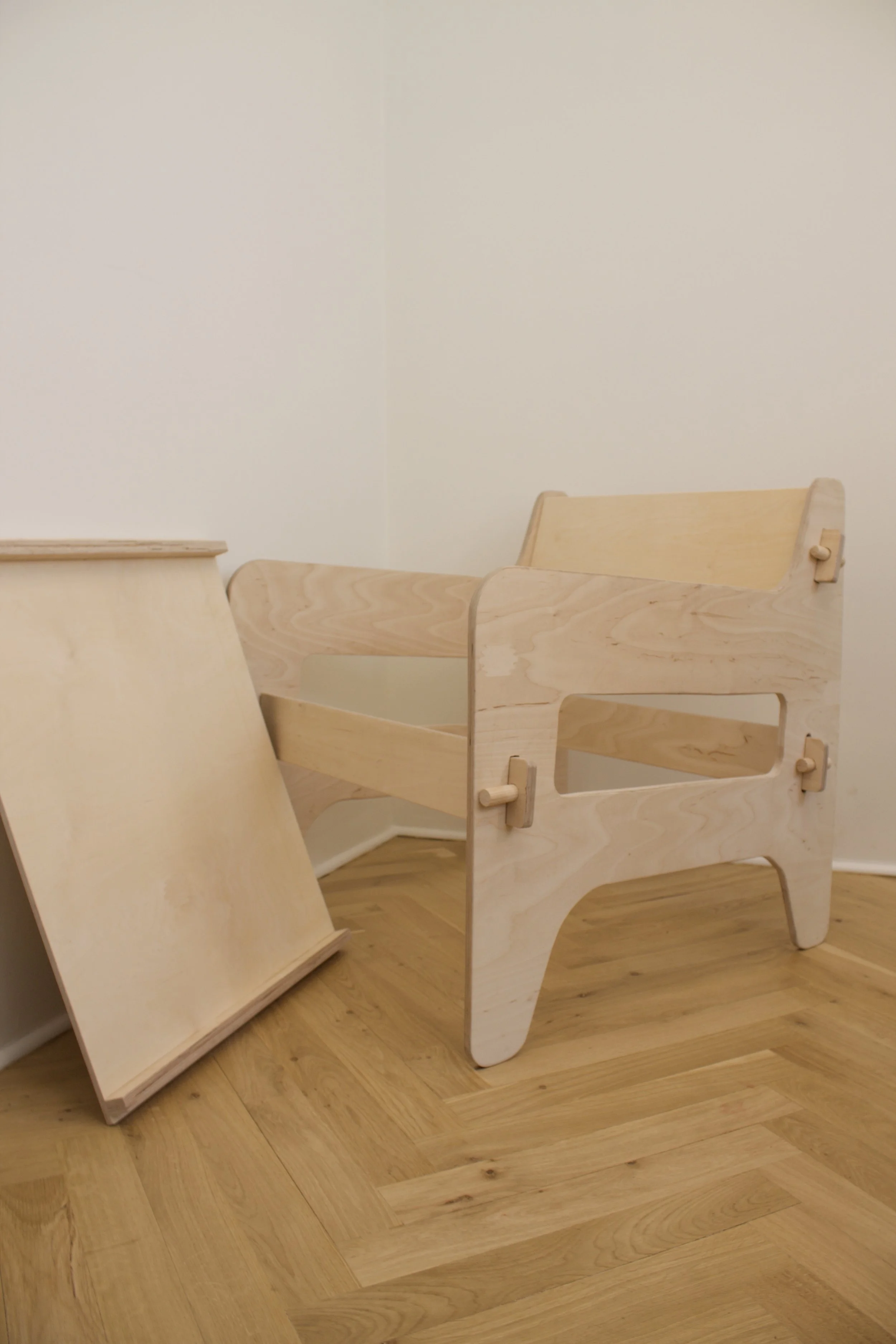Thinner plywood on the backrest and seat allows for a gentle flex with movement, without traditional upholstery but remaining strong under pressure.