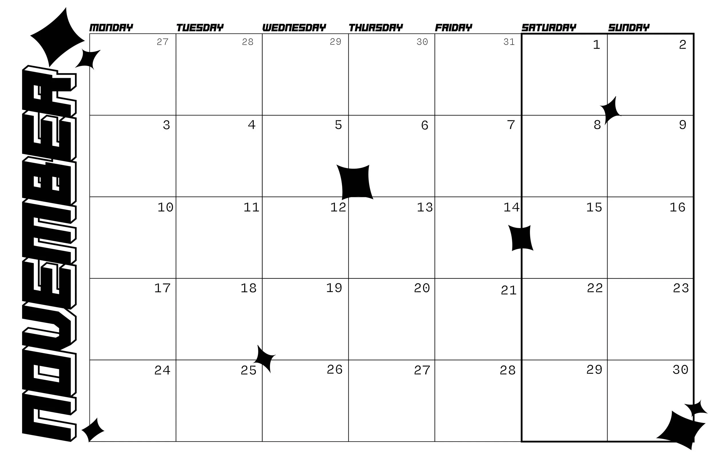 -a blank month page to fill in after the fact. (Tabloid Size)